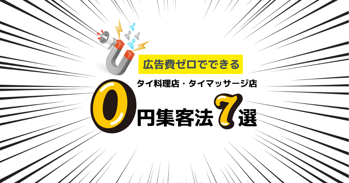 今回は、タイ料理店・タイマッサージ店が今日からできる「0円集客」の方法を紹介します。